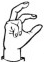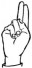 На ћирилици написано СЕРГЕЈ КУРМАЗОВИЋ састоји се из 16 слова [?]. Исписано ћириличном једноручном азбуком за глувонеме: